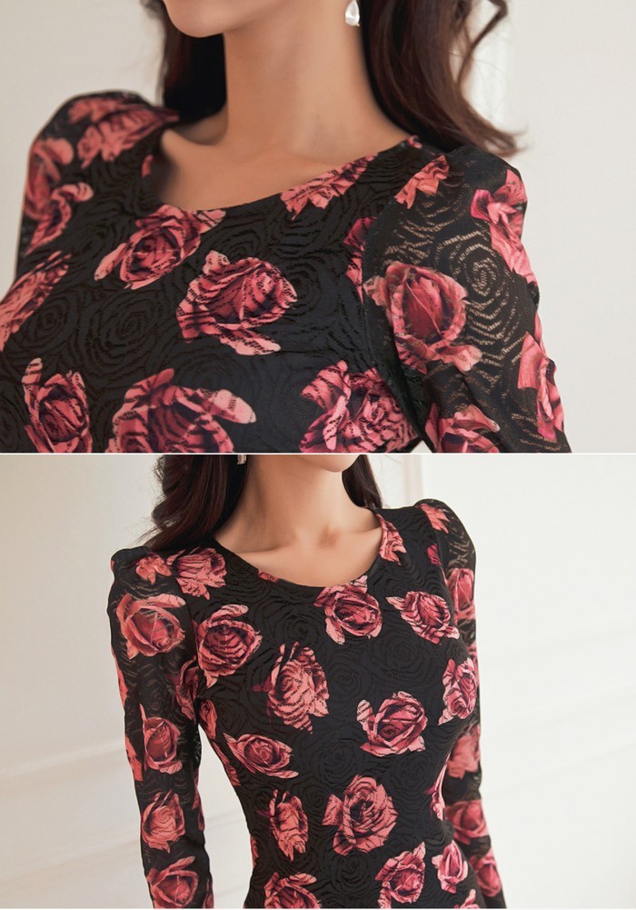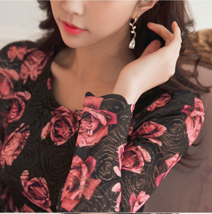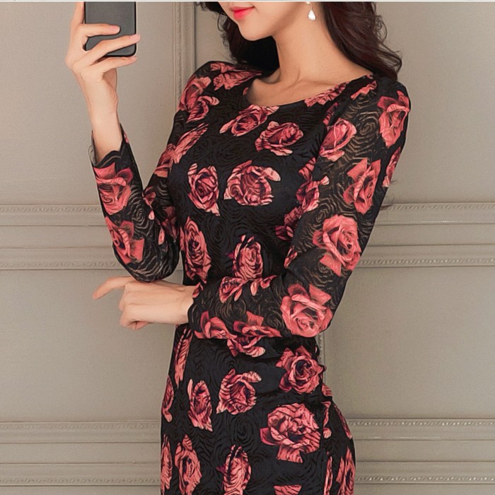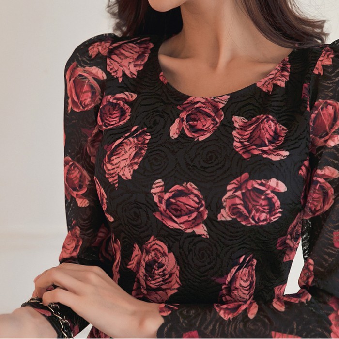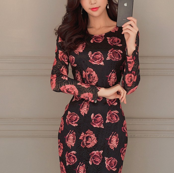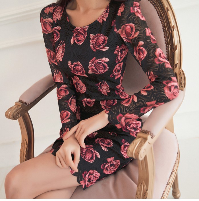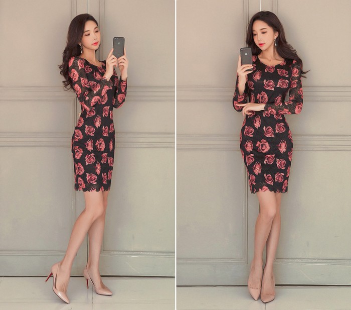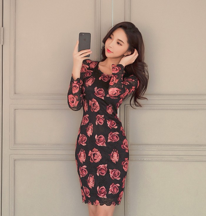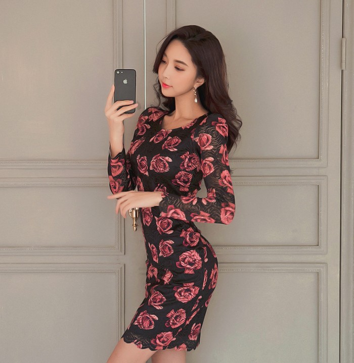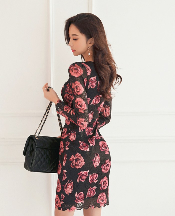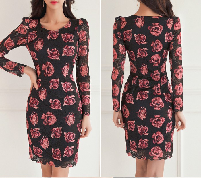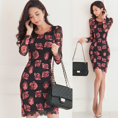 商品名:ワンピース レース 花柄 タイトワンピース フラワー