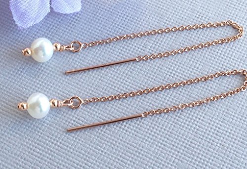 -. Brand : Austin Down to Earth -. Color : white -. Department : Women -. ProductGroup : Guild Product -. ProductTypeName : GUILD_JEWELRY -. Title : 14k Rose Gold Filled Threader Earrings with Freshwater Pearls, Rose Gold Ear Threads with Freshwater Pearls