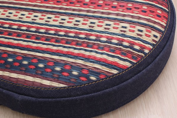 【素材】表地=い草※紋織 裏地・ヘリ・マチ部=綿100%【国産デニム生地】 中材=ウレタンフォーム8mm