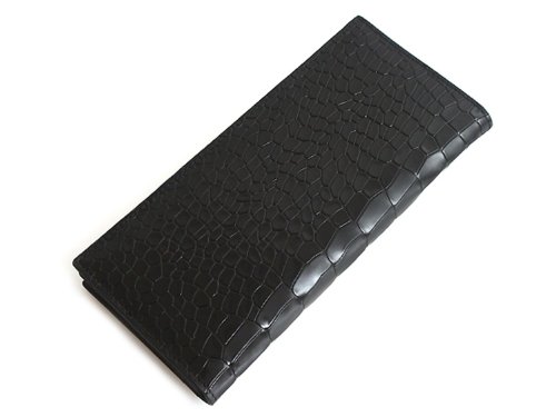 - Title : Men's Anaconda Pattern Genuine Cowhide Leather Long Wallet Bifold Useful Purse (Black)