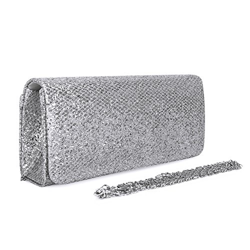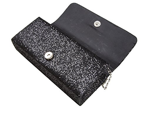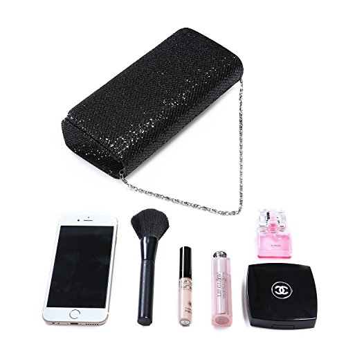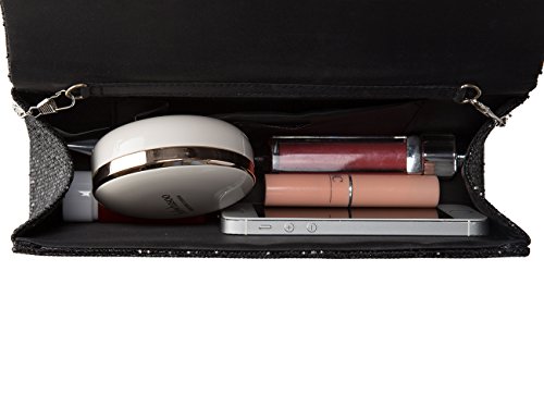 Decorated with shinny sequins and silk material bottom. Inside polyester lining with one small pocket