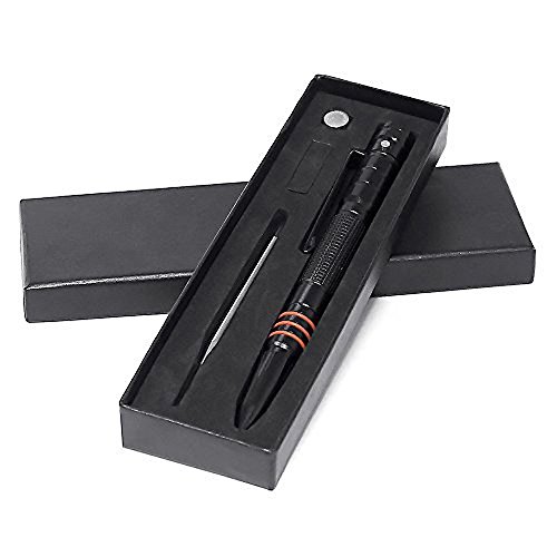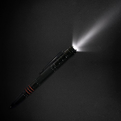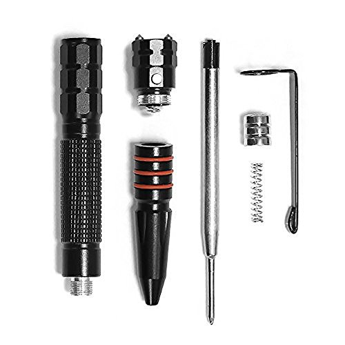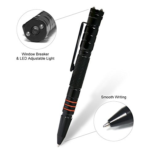 -. Feature : ALWAYS BE PREPARED: Don't be defenseless. Feel free that you can fight back against a sudden attack if needed. Both the pointed and rounded ends can be used against an assailant, making it doubly effective. / LED LIGHT ADDITIONAL: It features a built-in LED flashlight providing bright light at dark night, practical for everyday use. Button cell batteries included. / ELEGANT APPEARANCE: Unassuming in appearance, at the same time this is a seriously tough and damaging survival tool if needed. Attractive and sleek-looking, it is perfect for the home or office as well as in the field for use as a pen and a tactical back-up. / NEVER BE TRAPPED IN A CAR - SMASH WINDOWS WITH ONE STRIKE: Glass breaker tip made of tungsten carbide (used in armor-piercing bullets) - stable thumb grip to apply maximum force - ultra strong anti-rust aircraft T6063 aluminum alloy shaft. / SMOOTH WRITING - Comfortable Pen for Every Day Use or Emergency Situations.