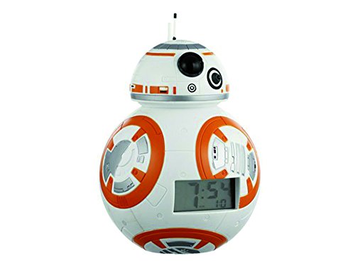 Fly through the Galaxy with your new BB8 BULBBOTZ clock, the perfect droid companion for any T-70 X-wing pilot. Press down on his head to activate the light up functions that will ensure you never stray off course. His backlit LCD screen and alarm functions will always alert you when danger is near. Use the buttons at the back to set his alarm and get him ready to fight!
