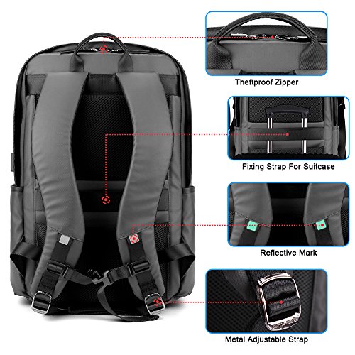 -. Binding : Electronics -. Brand : Modoker -. Color : Black -. EAN : 5294225015290 -. Feature : External USB Interface: You can easily and conveniently charge your phone, tablet and other devices without opening up the backpack. / High-Quality Material: Made of water repellent, tear-resistant and anti-scratch 1680D double-pile polyester for lasting durability. / Multi-Compartment:17 x 12.6 x 6.3 inches. Generous main compartments with padded sleeve for 15.6-inch laptops and several functional pockets allow you to keep all of your gear secure and organized in its place. / Anti-Theft: The hidden zipper and invisible pockets located on the back keep your laptop and other valuables safe and handy. / Comfort: The innovative weight balance design makes you feel 20%-25% less weight. The body side and shoulder straps have excellent thick breathable mesh padding, offering your back plenty of cushioned comfort. -. Label : Modoker -. Manufacturer : Modoker -. ProductGroup : PC Accessory -. ProductTypeName : CARRYING_CASE_OR_BAG -. Publisher : Modoker -. Studio : Modoker -. Title : Modoker Anti Theft Business Laptop Backpack with USB Charging Port Water Resistant Computer Bags Under 17.3 Inches Notebook, Black