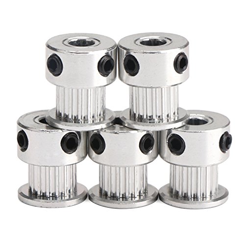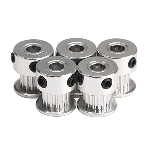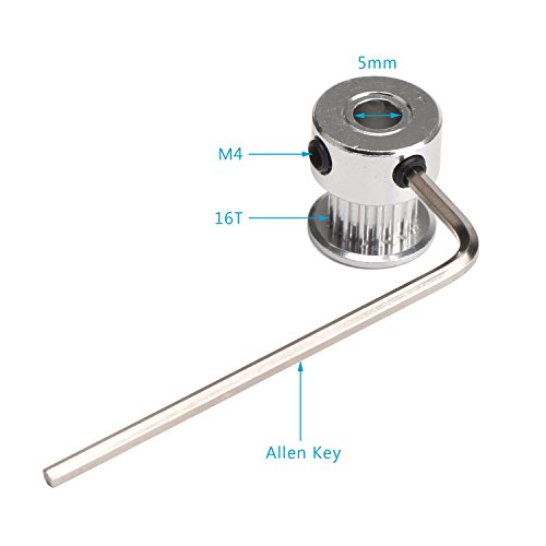 DROK 5PCS Aluminum GT2 Timing Belt Pulley 16 Teeth Bore 5mm Width 6mm and Wrench for RepRap 3D Printer Prusa i3