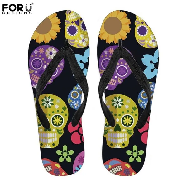 Item:Sugar Skulls Pattern Summer Women Flip Flops Brand