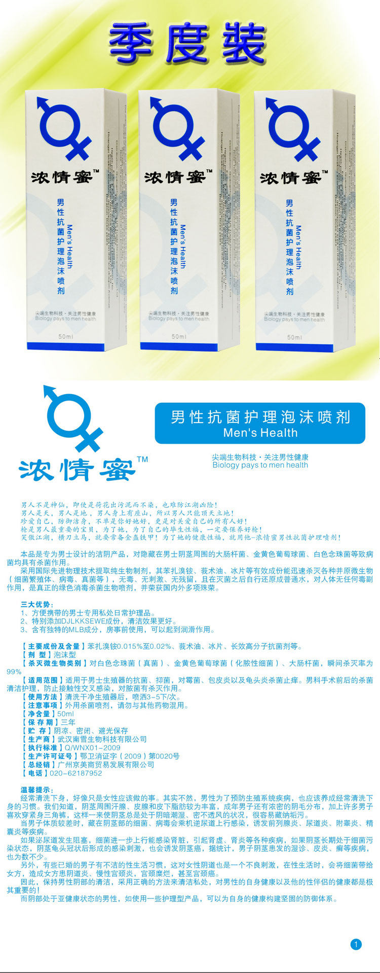 【适用范围】:适用于男士生殖器的抗菌、抑菌,对霉菌、包皮炎以及龟头炎杀菌止痒。男科手术前后的杀菌清洁护理,防止接触性交叉感染,对脓菌有杀灭作用。