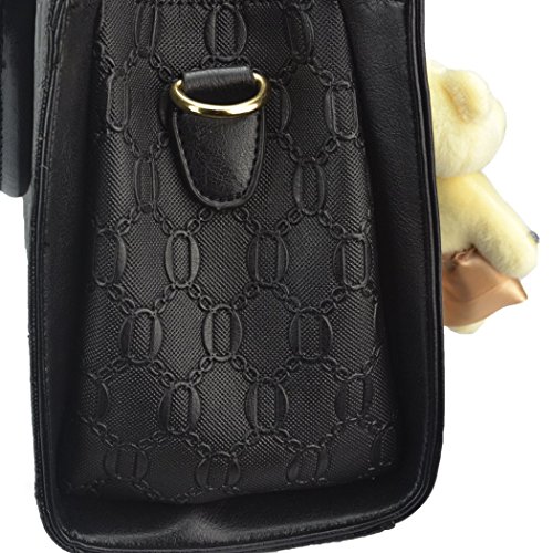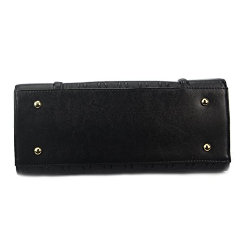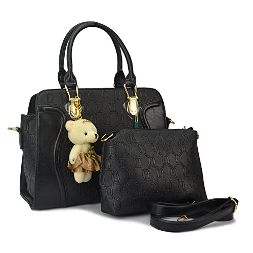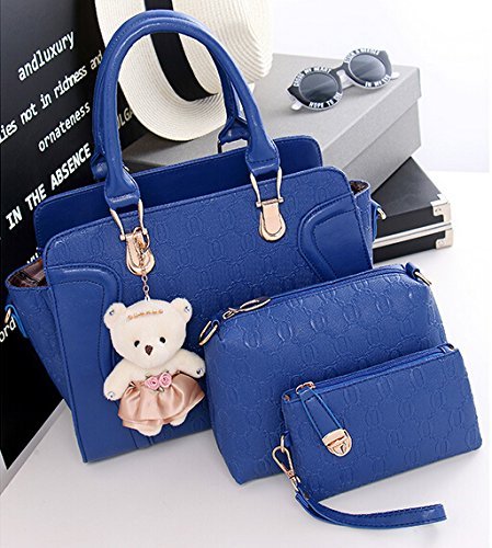 -. Feature : Outer Material: Pu Leather Inner Material: Polyester / Including a top handle bag, a shoulder bag, a clutch bag, and a card holder / Dimension:Handbag: 12.6" L x 7.5" H x 5.1"W Handle drop:6.9",Shoulder Bag: 8.7" L x 5.7" H x 2.6"W ,Clutch Bag: 7.3" L x 2.2" H x 1"W / Capable of holding your cell phone,perfume, umbrella, keys, wallet, sunglasses,makeup case. / The bags can all be used as a set or individually without any problems they are just that lovely.