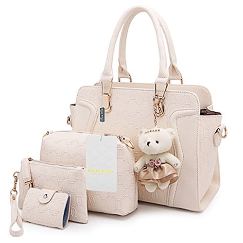 -. Title : Women's Fashion Mutifunction Leather Printing Tote Handbag Shoulder Cross Body Purse Evening Bag 4Pcs Set