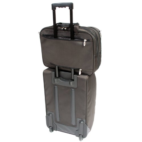 - Feature : 2-Piece Set Combo with briefcase and 21? carry-on rolling luggage 3 Interior pockets / Strong, modern construction design for extra durability Ball bearing in-line skate wheels with corner protection / Leatherette handles and touch points for style, comfort and strength Heavy-duty oversized zippers and hardware / Rubberized corner protection Locking point-click aluminum telescope handle retracts into shell / Smart Zipper converts rear pocket into a panel that secures case to a separate wheeled case handle