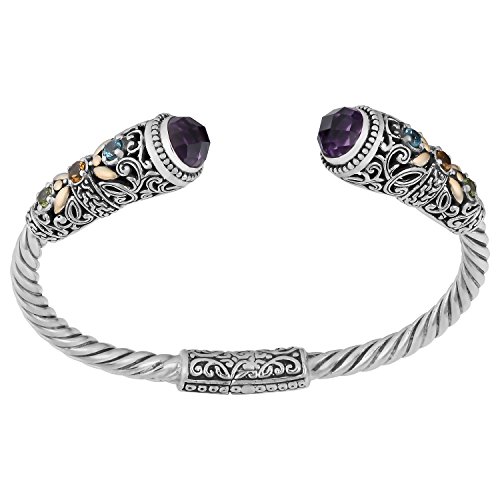 -. Title : Artisanica 18 Karat Yellow Gold And Sterling Silver Amethyst Multi-Gemstone Cuff Bracelet