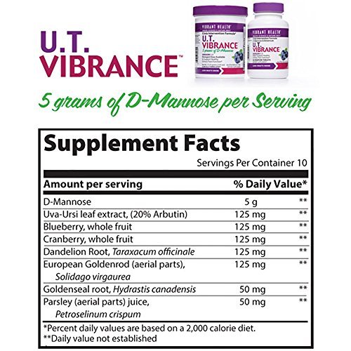 HELP FOR NOW AND LATER: Why not maximize your chances for long term urinary tract health? Vibrant Health's U.T. Vibrance combines European D-mannose with carefully selected botanical extracts and powders traditionally used to support healthy urinary tract function.