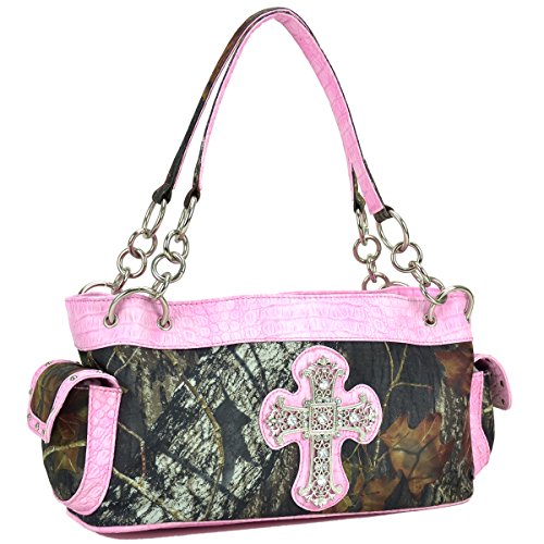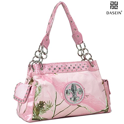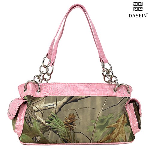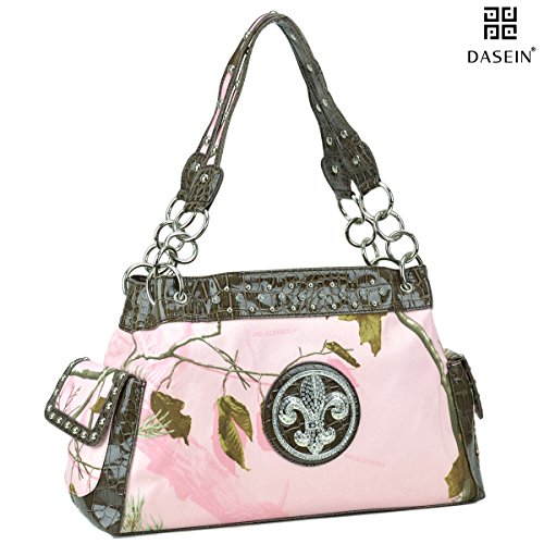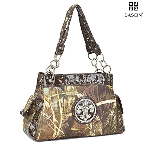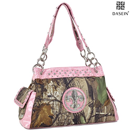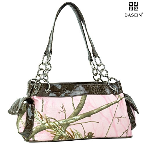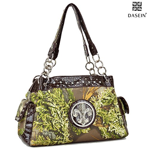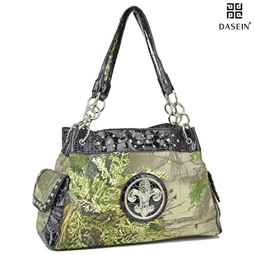 A beautiful rhinestone adornment is what makes this camouflage shoulder bag stand out. Along with studded accents, the faux crocoskin trim will give this fashion shoulder bag a flattering favour.