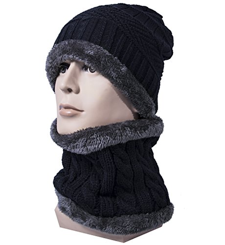 Binding : Apparel Product Description Loritta Men Beanie Hat Scarf Set Winter Thick Knitted Warm Hat and Infinity Scarf Gift Set 2 Pcs - Black