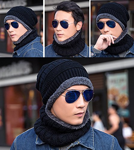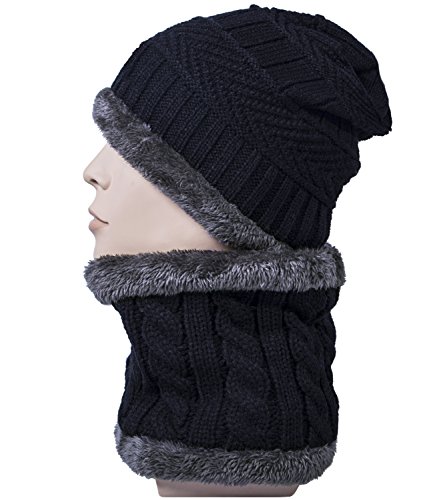 About the product: - Dual layers design. Super thick and chunky acrylic knit construction keeps you warm. The soft fleece inner lining has better heat retention, enjoy the maximum warmth. Delicate sewing thread, provide the added durability. - This winter hat and scarf set are perfect for daily wearing including indoors and outdoors activities, for example: sleeping, walking your dog, cycling, skiing, snowboarding, running, camping, traveling, fishing, hiking, motorcycling and so on. - Folding light weight snow ski caps could cover your ears to provide extra warm on your ears and your cheek. Simple but fashionable design keeps you looking good in cold weather. - Beanie Hat Circumference: 21.2-23.2'(54-59cm), Height: 10.6'(27cm); Circle Scarf Circumference:22-27.6'(56-70cm), Wide: 7.9'(20cm). This hat can be stretched and unisex style, suitable for most men and women. - Come with one knit beanie hat and one loop scarf. Multi-function hat and scarf set,you can use it separate or together as you will. - 2-in-1 winter accessories, stay warm all the time, great for outdoor activities and daily warmer. - Various colors can be chosen: classic black, navy, grey, wine red. There is always one fits your winter. - This beanie hat and infinity scarf set is great ideal as Birthday gift, Thanksgiving Day Gift, Christmas Gift, New Year Gift and so on.