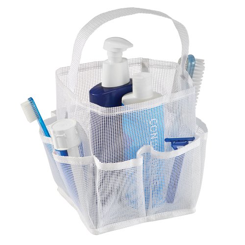 Keep all your toiletries organized! The InterDesign Una Bathroom Shower Caddy Tote is perfect for the bath, dorm, travel, and more! It features nine pockets to hold your accessories, a comfy handle, and is made of durable mesh.
