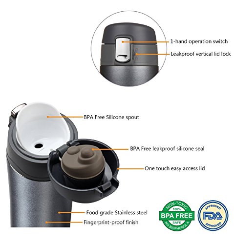 PUSH-BUTTON FLIP LID: Keep one hand free thanks to the convenient push-button flip top lid. It's easy to keep a hand on the wheel, answer an email, or scramble your eggs while drinking your favorite beverage. The button release lets you open and close the mug with the touch of a finger. No other mug has a feature quite so sleek and efficient.