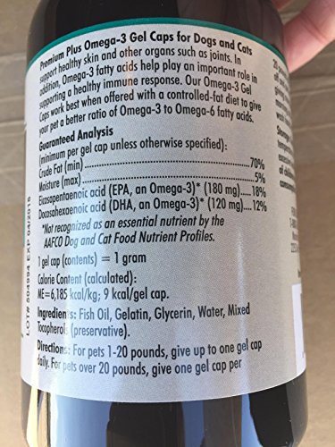 Studio : Doctors Foster and Smith Publisher : Doctors Foster and Smith Binding : Misc. Product Description Does your pet need maximum skin support that only pure Omega-3 fatty acids can offer? A dog's skin is naturally exposed to many elements including pollens, pollutants in the air, and other airborne substances. These dogs may benefit from the maximum skin support that only pure Omega-3 fatty acids can offer. Fish oil is the best source of these important fatty acids dogs and cats need for healthy skin support, a healthy immune response, PLUS healthy joints. These fatty acids are also important for heart and kidney health, making Premium Plus Omega-3 our veterinarian's recommendation for overall wellness. Give unflavored Gel Caps to your pet whole - or, if your dog is accustomed to a liquid, snip off the top and drizzle directly on food. For dogs and cats. They work best when offered with a low-fat diet to give your pet a better ratio of Omega-3 to Omega-6 fatty acids. Ideal for use in conjunction with joint support products such as Joint Care Premium Plus. May take 6-8 weeks to see full effect. For dogs and cats. Directions: For pets 1-20 pounds, give up to one gel cap daily. For pets over 20 pounds, give one gel cap per 20 pounds of body weight. End may be snipped off and contents added to your pet's food. If giving more than one gel cap, divide between morning and evening. As with any edible item, wash hands after handling product. 0
