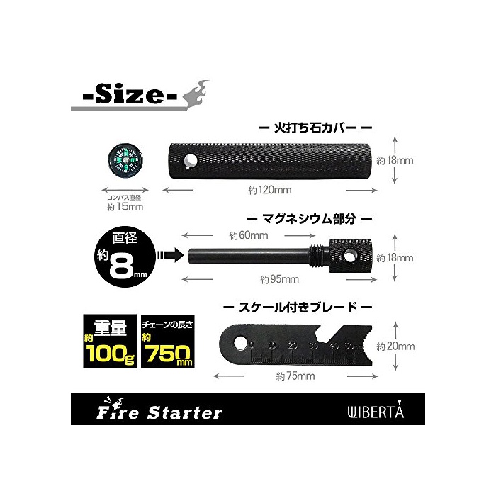 원본상품명: LIBERTA(リベルタ) 火打石 火打ち石 ファイヤスタタ アルミ マグネシウム 日本語明書 納袋 ブラック