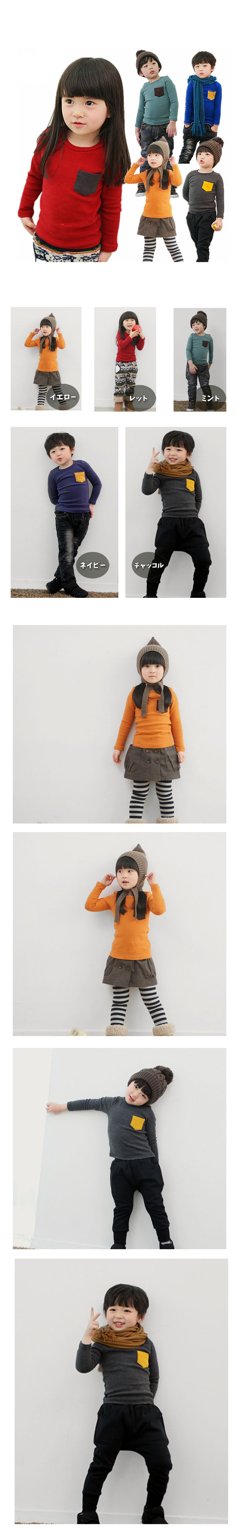 ポケット付き・子供長袖Tシャツのサイズ表示