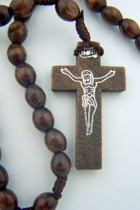 -. Feature : Material: Wood / Cord / Rosary Length: 14" / Crucifix Size: 1 3/4" / Bead Size: 8 x 7MM