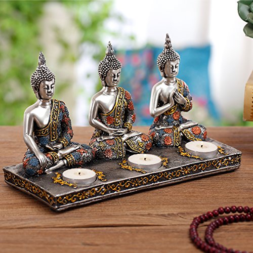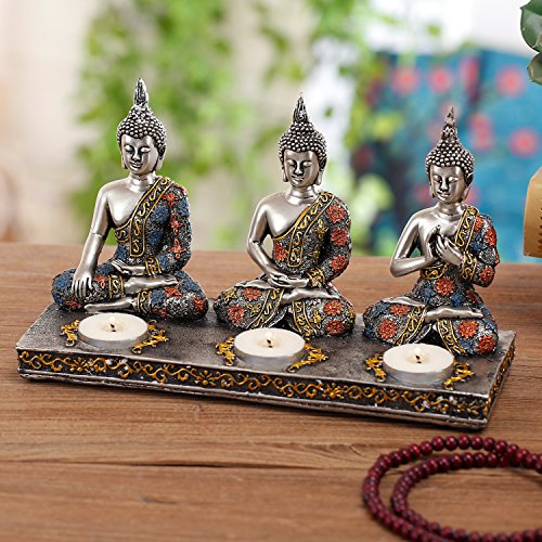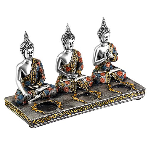 Thai Style Buddha Statues w/ Tealight Candle Holders / Earth Touching, Meditation, and Teaching Gestures