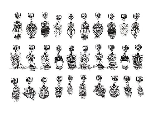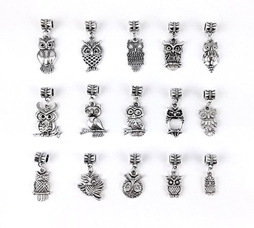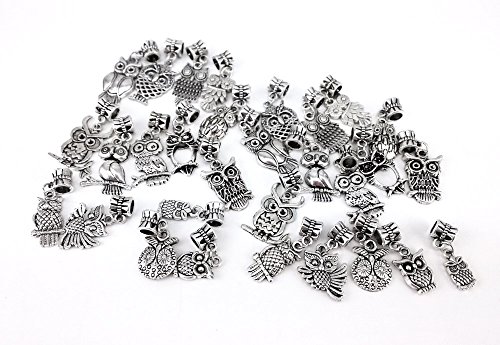 yueton 30pcs Owl Style DIY Silver Charms Connector Bails Mix Beads with Pendant