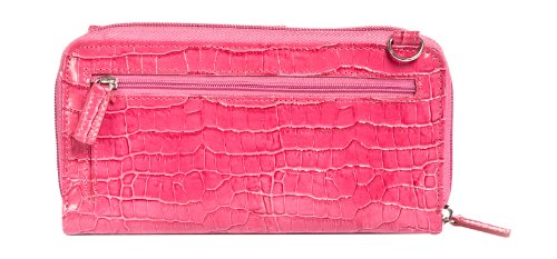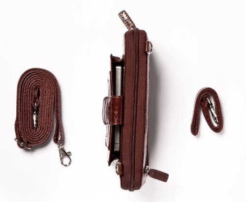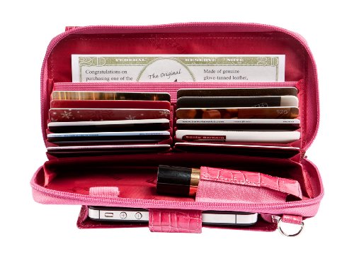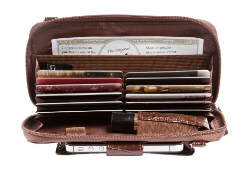-. Feature : Actual Size: 7-1/4" x 4-1/2". Fits iPhone 6, Samsung Galaxy, HTC One, Sony Xperia, LG G2, Nexus / Hand-finished Italian leather cell phone wallet purse for women / Holds 12 credit cards/Outer ID display. Zip around / Cell phone holster for any sized phone - 5 1/2" x 3.6" x .75" / Detachable wristlet, adjustable over-the-shoulder strap