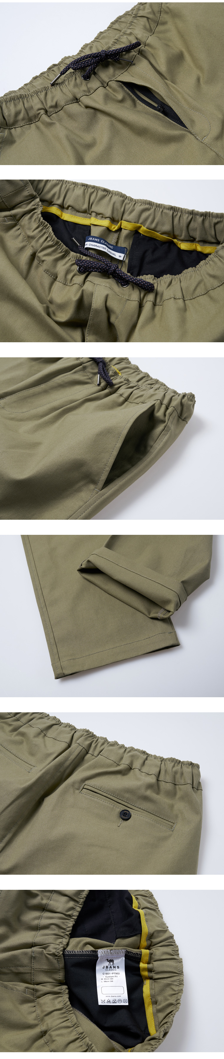 상품 정보 소재(%) - 면97%,스판3% 색상 - 카키 치수 - M / L 제조사 - ㈜제이반스 제조국 - 대한민국 제조년월 - 2018.04 이후 코튼트윌 루즈핏 스판 밴딩팬츠 고급 코튼소재로 제작된 밴딩팬츠입니다. 단정하면서도 캐주얼한 느낌으로 가먼트워싱 처리된 원단을 사용해 퀄리티를 높였습니다. 스판사가 함유되어 신축성이 좋아 편안한 착용감을 느낄 수 있습니다. 살짝 루즈한 핏감으로 편안한 데일리룩 연출에 활용하기 좋은 팬츠로 깔끔한 티셔츠나 레터링티셔츠 혹은 스 #50939;셔츠와 코디하면 잘 어울립니다. 권장세탁방법 제옷을 오래 입고 변형을 막기 위해 드라이크리닝을 권장합니다. 데님이나 짙은 색상의 옷은 물빠짐이 있을 수 있으니 반드시 개별세탁 해주세요. 잘못된 세탁으로 인해 손상된 옷은 교환/환불이 어려운점을 미리 알려드립니다. | ||||||||||||||||||||||||||||||