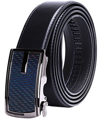 TRIM TO FIT - The total length of this leather belt is 130cm (excluding the buckle), suit for 28" - 44"waist. The high quality ratchet belt can be easily cut to your measurements. Wide Strap: 1 3/8" inch (35mm)