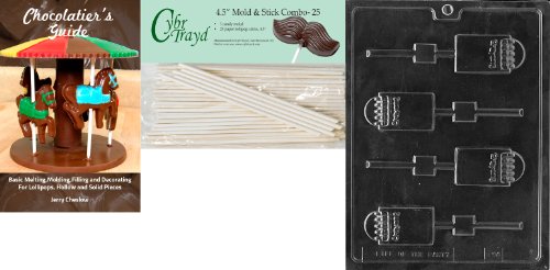 Cybrtrayd 45St25Bk-K094 'Crayon Lolly' Kids Chocolate Candy Mold with 25 4.5-Inch Lollipop Sticks and Chocolatier's Guide