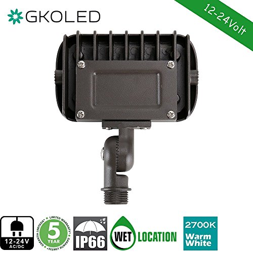 GKOLED 12W Outdoor Waterproof LED Spike Garden Security Floodlight, 900Lumens, 80CRI, 2700K, 12V-24V AC/DC, 1/2 Knuckle Mount, UV Resistant