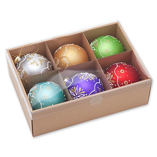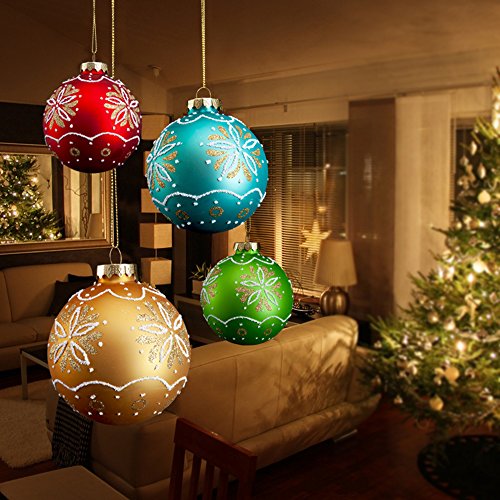 These gorgeous Christmas ball ornaments are decorated with intricate festive patterns drawn with glitter. They will be the perfect decorations to jazz up any Christmas tree.