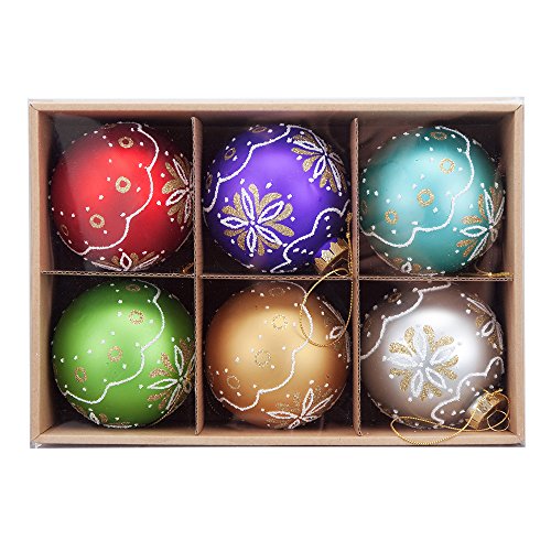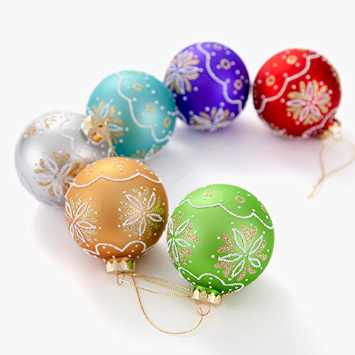 Comix Christmas Tree Glass Ball Ornaments Decorated with Hand Drawn Flowers in Glitter