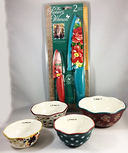 - The Pioneer Woman Flea Market 4-Piece Ceramic Decorated Measuring Bowls + Pioneer Woman Vintage Floral Ceramic Knife Cutlery 2 Piece Bundle