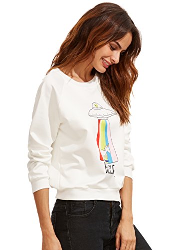 -. Title : ROMWE Women's Casual Long Sleeve UFO P.R.Int Pullover Cute Sweatshirt(One Size)