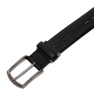솔리드 컬러의 깔끔한 외관에 가죽 부분 체크 라인배색으로 포인트를 주어 다양한 룩에 매치하기 좋은 베이직한 디자인의 벨트입니다.