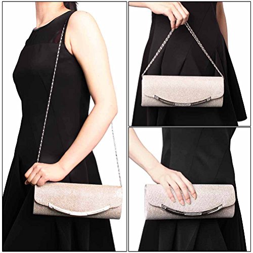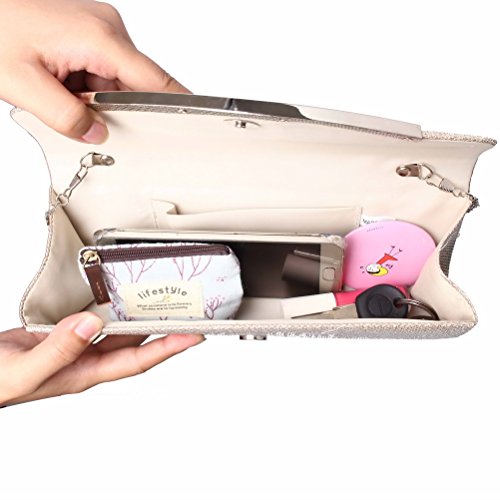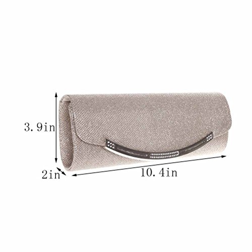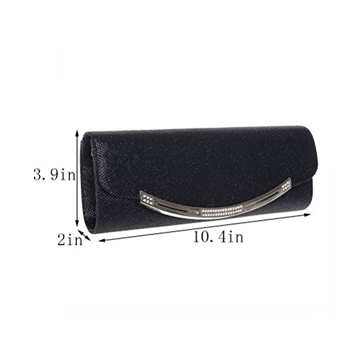 -. Feature : UNIQUE DESIGN: This clutch purse is made of high quality poleyster, decorated with SPARKLING RHINESTONE, chic and fashion / DIMENSION: 10.4 (L) * 3.9 (W)* 2 (H) Inch; This big capacity clutch purse can fit everything you need (smartphone, a few bobby pins, eyeglass, makeup products) / SAFE CLOSURE: Flap with magnetic snap closure, AVOID YOUR BELONGINGS SLIPING / CARRYING OPTIONS: You can hold this clutch purse IN YOUR HAND or you can also use it as a SHOULDER BAG or CROSS BODY BAG with the chains coming with the bag (detachable strap is 46.49 inch ) / OCCASIONS: Great for wedding, party, prom, fancy events. Just get this clutch purse to have a wonderful night