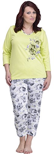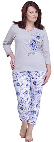 -. Binding : Textilien -. Brand : Merry Style -. Department : Damen -. Feature : Damenpyjama; 3/4 Ärmel; 7/8 Hose; Warm, bequem und elegant / Oberteil mit schönem Muster; Gerades Hosenbein / Aus 100% natürlicher, atmungsaktiver und bequemer Baumwolle; Das Material verfärbt und verformt sich nicht während der Wäsche / Ideal für etwas molligere Frauen / In der EU hergestellt -. IsAdultProduct : 0 -. ProductGroup : Apparel -. ProductTypeName : SLEEPWEAR -. Title : Merry Style Damen Schlafanzug in Übergröße 1038/1046