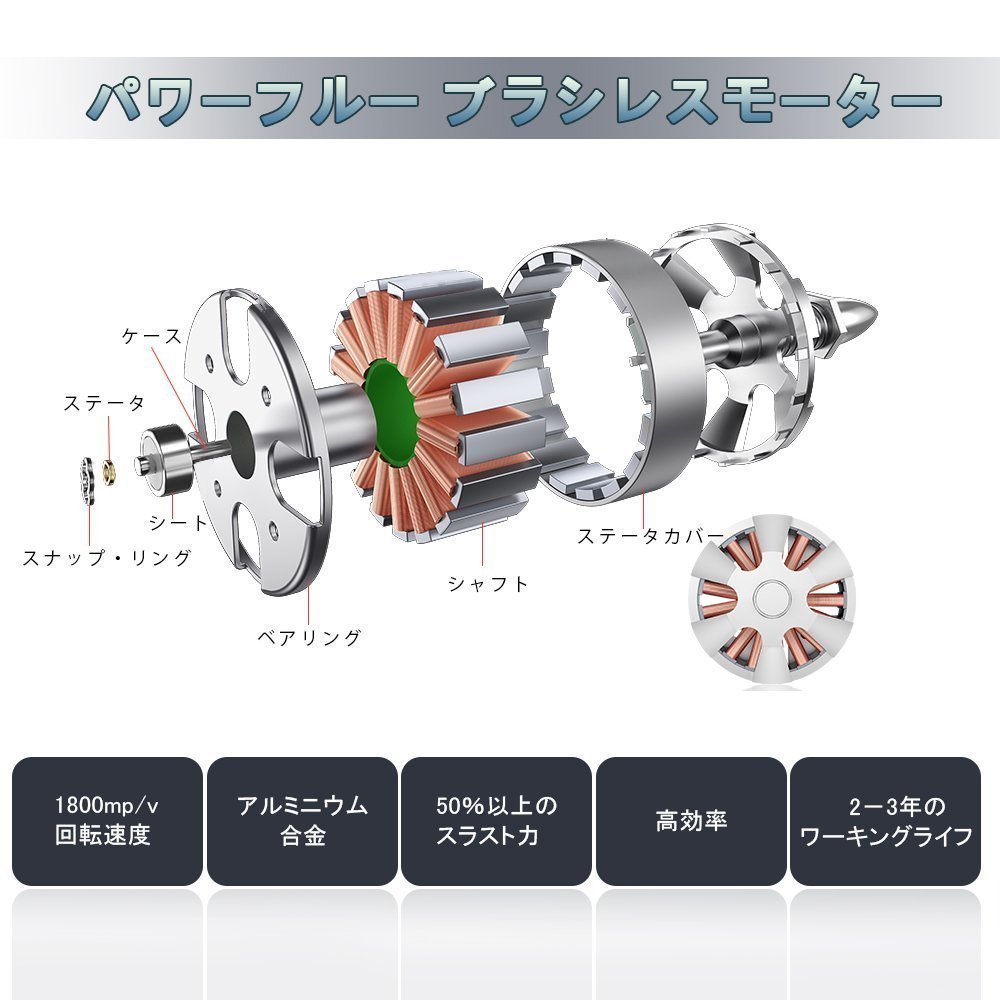 It adopts a brushless motor, greatly reduces friction, reduces heat generation, improves the durability of the motor, improves the efficiency of the motor, extends the life of the battery by 50% or more.