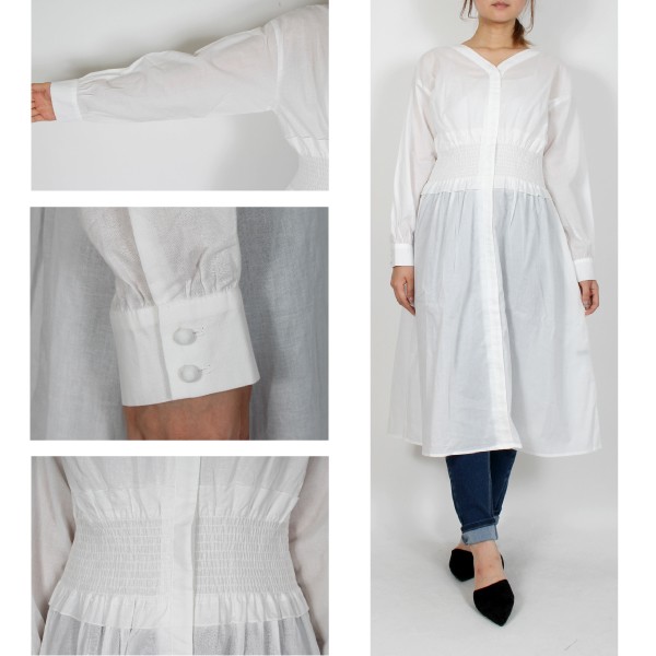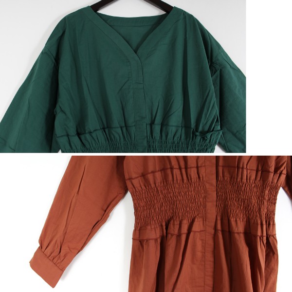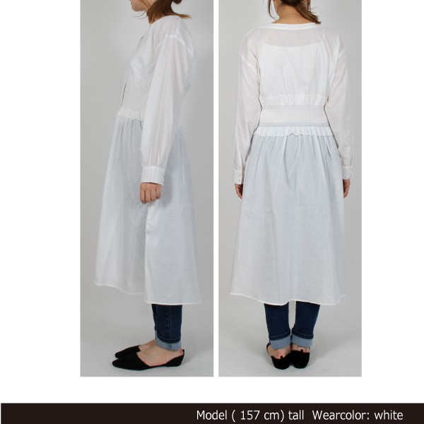 | 実寸 | 着丈:110cm、肩幅:52cm、バスト:112cm、ウエスト:75cm(ゴム)、袖丈:51cm、袖口:22cm、裾周り:180cm |