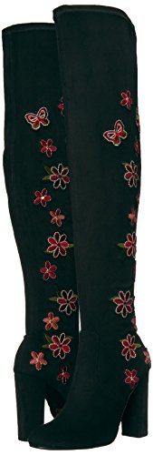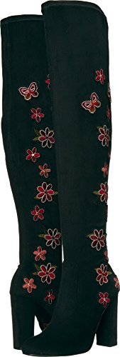 Product DescriptionOver the knee boot with floral embellishment and chunky heel0