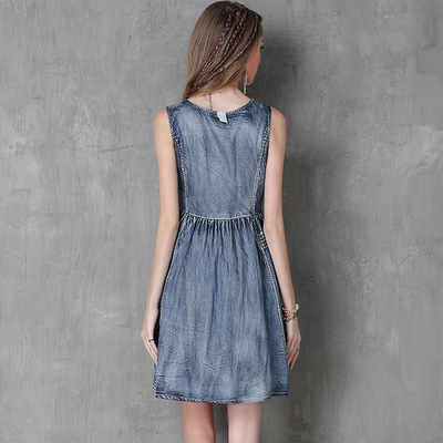 #大人かわいい#膝上丈#デニムワンピ#ノースリーブ#ウエスト"