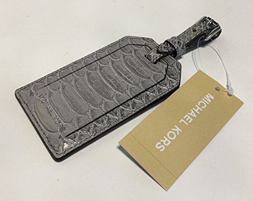 Michael Kors Jet Set Travel Luggage Tag in Dark Silver Croc Embossed Leather