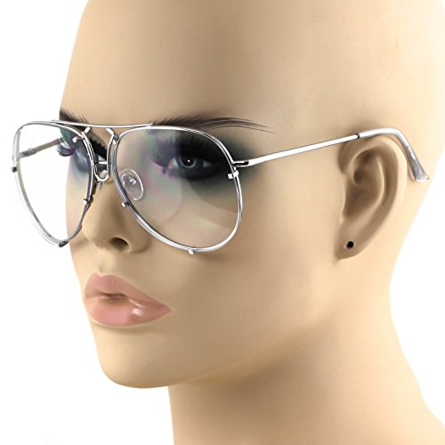 Elite Aviator Sunglasses VINTAGE Clear Lens Men Women Fashion Style Retro Frame (Black, 2.5)