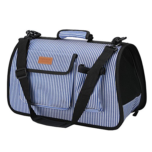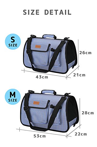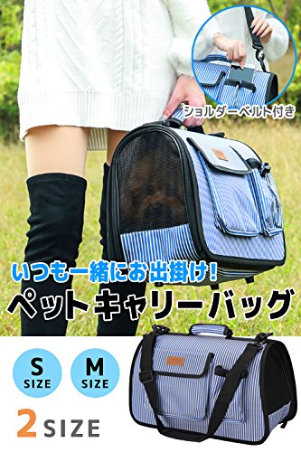 BEATON JAPAN 애완동물 캐리 백 개와 고양이 외출 숄더 스트랩 부착 멋진 블루 스트라이프무늬