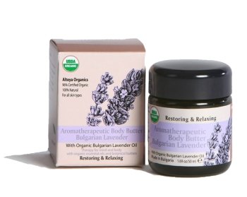 -. Feature : Aromatherapy Body Butter based on Bulgarian Lavender Oil / USDA certified organic skin treatment; Made in the Valley of Roses/ Europe / Improves skin texture & moisture balance; provides deep hydration / Relaxes the mind and reduces anxiety; Increases sensuality / Size 1.7 fl oz