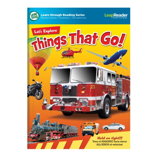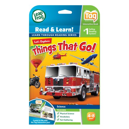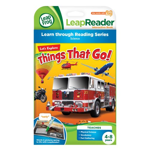 -. Binding : Toy -. Brand : LeapFrog -. EAN : 5054480504577 -. Feature : Get a green light for learning and discover the science behind things that move. / Boost your child's vocabulary with "fuel," "horsepower" and other great words that move them to read in this interactive book. / Teaches physical science, vocabulary and fact gathering. / Ages 4-8 years. / Works only with Tag Reading System and LeapReader Reading & Writing System (sold separately). -. IsAdultProduct : 0 -. Label : Leapfrog -. LegalDisclaimer : Internet connection required to download audio -. Manufacturer : Leapfrog -. Model : 80-21206E -. MPN : 80-21206E -. NumberOfItems : 1 -. PackageQuantity : 1 -. PartNumber : 80-21206E -. ProductGroup : Toy -. ProductTypeName : TOYS_AND_GAMES -. Publisher : Leapfrog -. Studio : Leapfrog -. Title : LeapFrog LeapReader Book: Let's Explore Things That Go! (works with Tag) -. UPC : 885962155117 -. Warranty : 90 day warranty against manufacturer defects