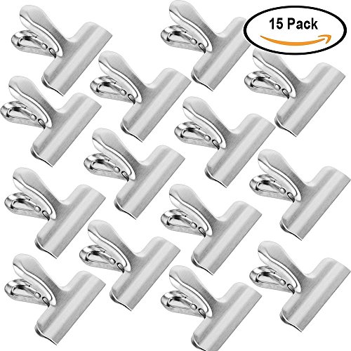 Mydio Pack of 15 Stainless Steel Chip Bag Clips,Great for Air Tight Seal Grip on Coffee & Food Bags, Kitchen Home Usage