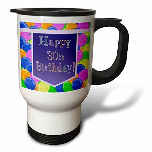 3dRose tm_174819_1 Balloons with Purple Banner Happy 30Th Birthday, Travel Mug, 14-Ounce, Stainless Steel